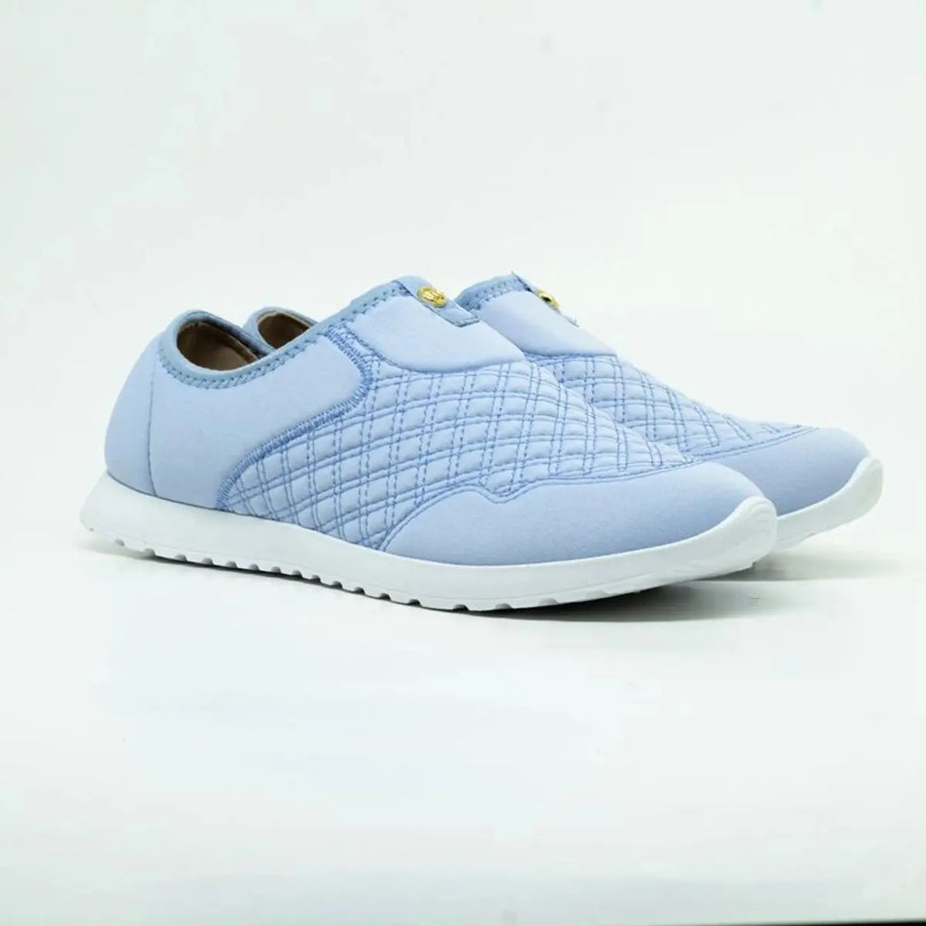 Seu tecido em lycra elástica abraça o pé com suavidade, oferecendo um ajuste perfeito e confortável. O sistema slip-on permite calçar facilmente, sem esforço ou cadarços. A palmilha ortopédica e o solado macio ajudam a absorver impactos, aliviando a pressão nas articulações e garantindo suporte durante todo o dia.